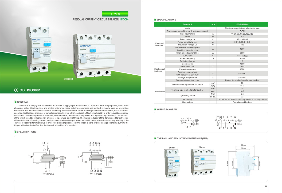 SONTUOEC es uno de los proveedores/fabricantes chinos que se especializa en la producción de varios pequeños electrodomésticos. ST264J se utiliza en AC50 / 60 HZ, dos polos 230 V, cuatro polos 400 V, corriente nominal de hasta 63 A. Puede cortar automática e inmediatamente el suministro de energía una vez que alguien sufre una descarga eléctrica o una fuga de corriente por encima de lo especificado. Puede proteger eficazmente la seguridad personal y evitar daños al equipo. El disyuntor operado por corriente residual también puede funcionar como protección contra sobrecargas y cortocircuitos y cambios poco frecuentes de línea en condiciones normales. El producto es adecuado para industria, negocios, construcción, residencia, etc. Cumple con los estándares IEC61008-1.
