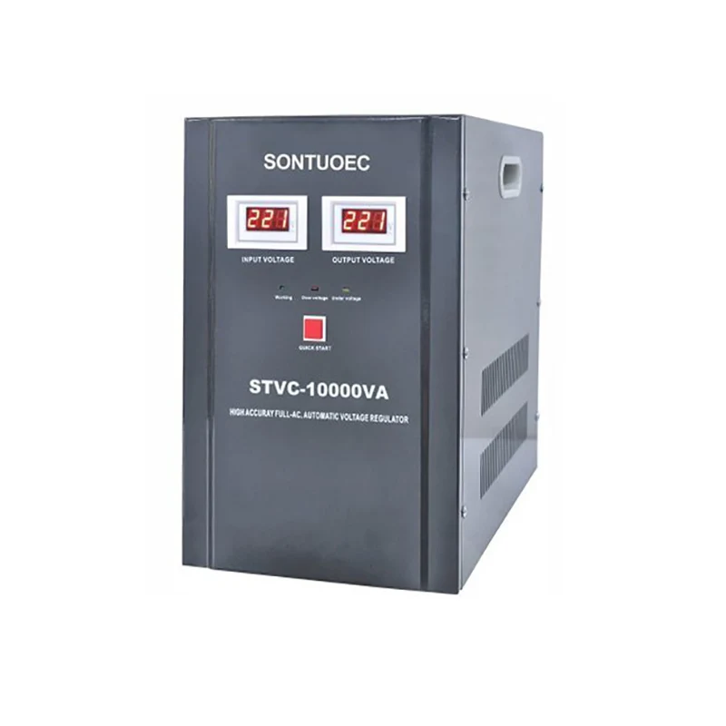 El estabilizador del regulador de voltaje automático de alta calidad de SONTUOEC es un tipo de dispositivo de administración de energía inteligente, cuya función central es monitorear automáticamente los cambios de voltaje de entrada y realizar ajustes rápidos a través de circuitos o mecanismos internos para garantizar que el voltaje de salida se mantenga dentro de un rango estable preestablecido. Este dispositivo tiene una amplia gama de aplicaciones en sistemas de energía, especialmente en entornos con grandes fluctuaciones de voltaje, como áreas remotas, líneas de producción industrial y centros de datos.