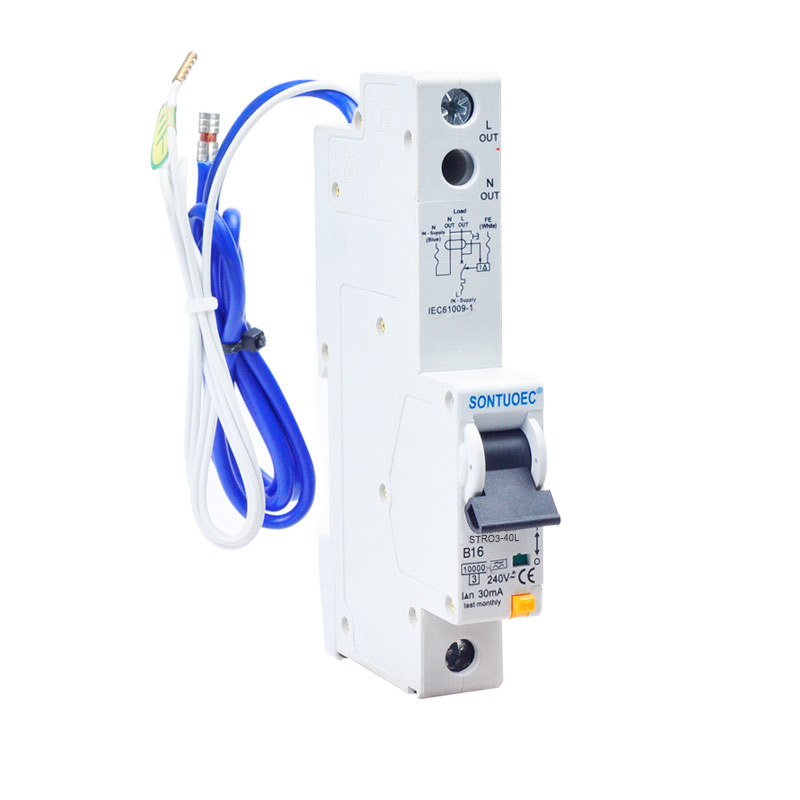 Protección de corriente residual: cuando la corriente residual (es decir, la corriente de fuga) en el circuito alcanza un valor preestablecido, el RCBO puede actuar rápidamente para cortar el circuito, evitando así los accidentes de electrocución y los incendios eléctricos.
