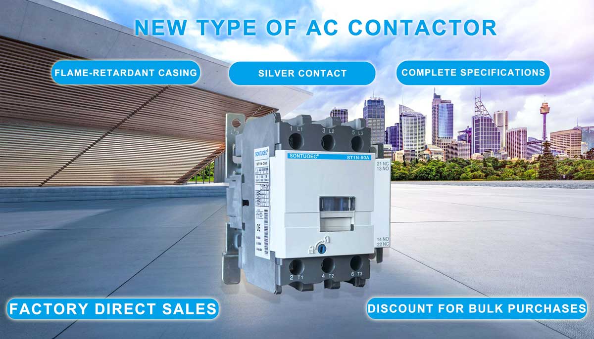 SONTUOEC es uno de los proveedores/fabricantes chinos que se especializa en la producción de diversos pequeños aparatos eléctricos. El contactor de CA de la serie ST1N es adecuado para usar en los circuitos un voltaje nominal de hasta 660 V CA 50 Hz o 60 Hz, corriente nominal de hasta 95 A, para abrir y cerrar, arrancar y controlar con frecuencia el motor de CA. Combinado con el bloque de contactos auxiliares, el temporizador de retardo y el dispositivo de enclavamiento de la máquina, etc., se convierte en el contactor de retardo, el contactor de enclavamiento mecánico y el arrancador estrella-triángulo. Con el relé térmico, se combina en el arrancador electromagnético. El contactor se fabrica según IEC 60947-1.