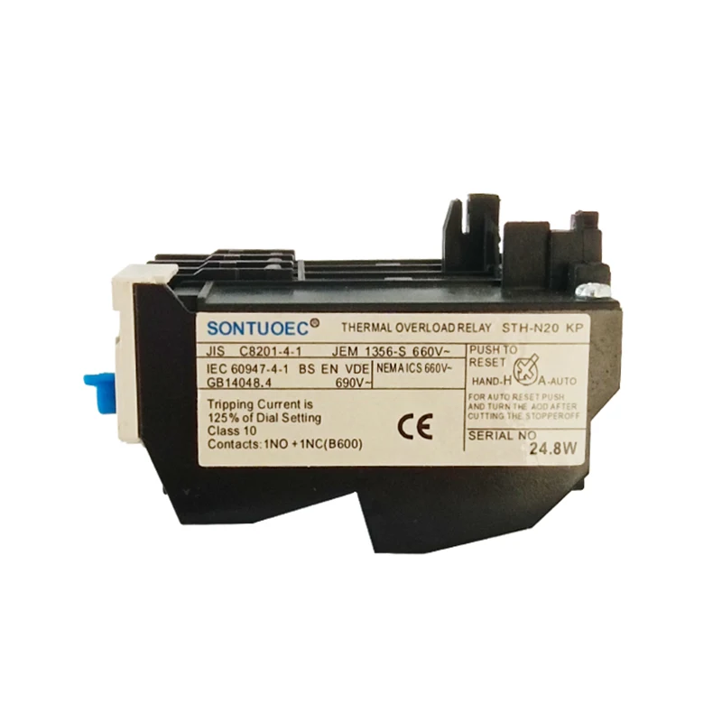 El relé térmico del modelo STH-N está especialmente diseñado para la protección de sobrecarga del motor de CA, cuando la corriente de ejecución del motor excede la corriente nominal, el relé térmico puede cortar automáticamente el circuito para evitar que el motor se dañe debido a la sobrecarga.